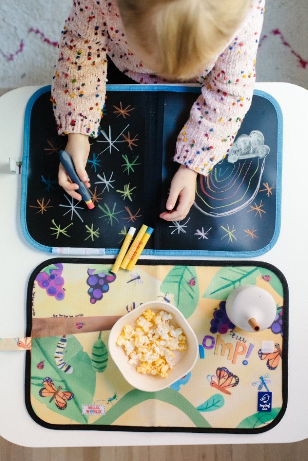 Komplektis on korduvkasutatav ja kustutatav matt ning pakk  ButterStix® - tolmuvabu kriidipulki.