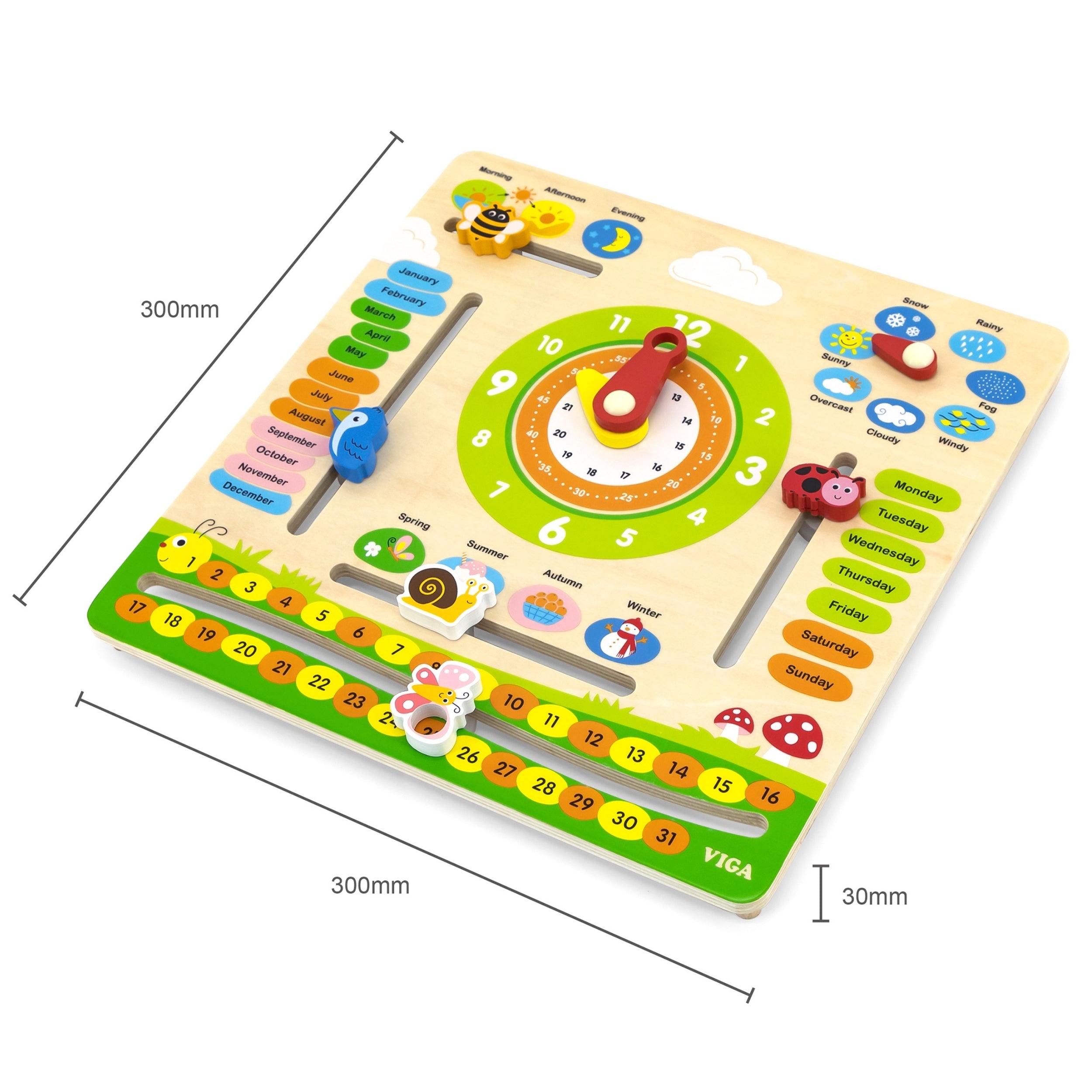 Puitablet manipuleerimiseks kaubamärgilt Viga Toys ühendab nädala päevade õppimise mängimisega, aidates lapsel igapäevaselt avastada päevade nimetusi, ilmamuutusi ja nädala rütmi atraktiivsel, interaktiivsel viisil. Toode on valmistatud kvaliteetsest puidust ja plastikust, mistõttu võid olla rahulik, et laps saab mängida ohutult. Värvilised, liikuvad elemendid tõmbavad tähelepanu ja julgustavad igapäevaselt õppimist praktilise tegevuse kaudu. See tahvel arendab mitte ainult peenmotoorikat, vaid ka organisatsioonilisi oskusi ja ajataju.