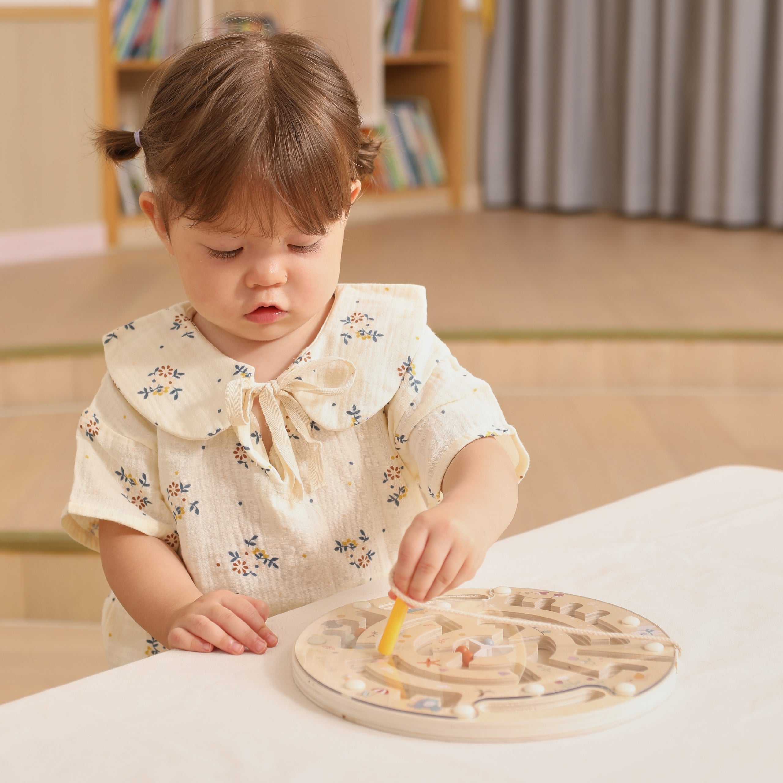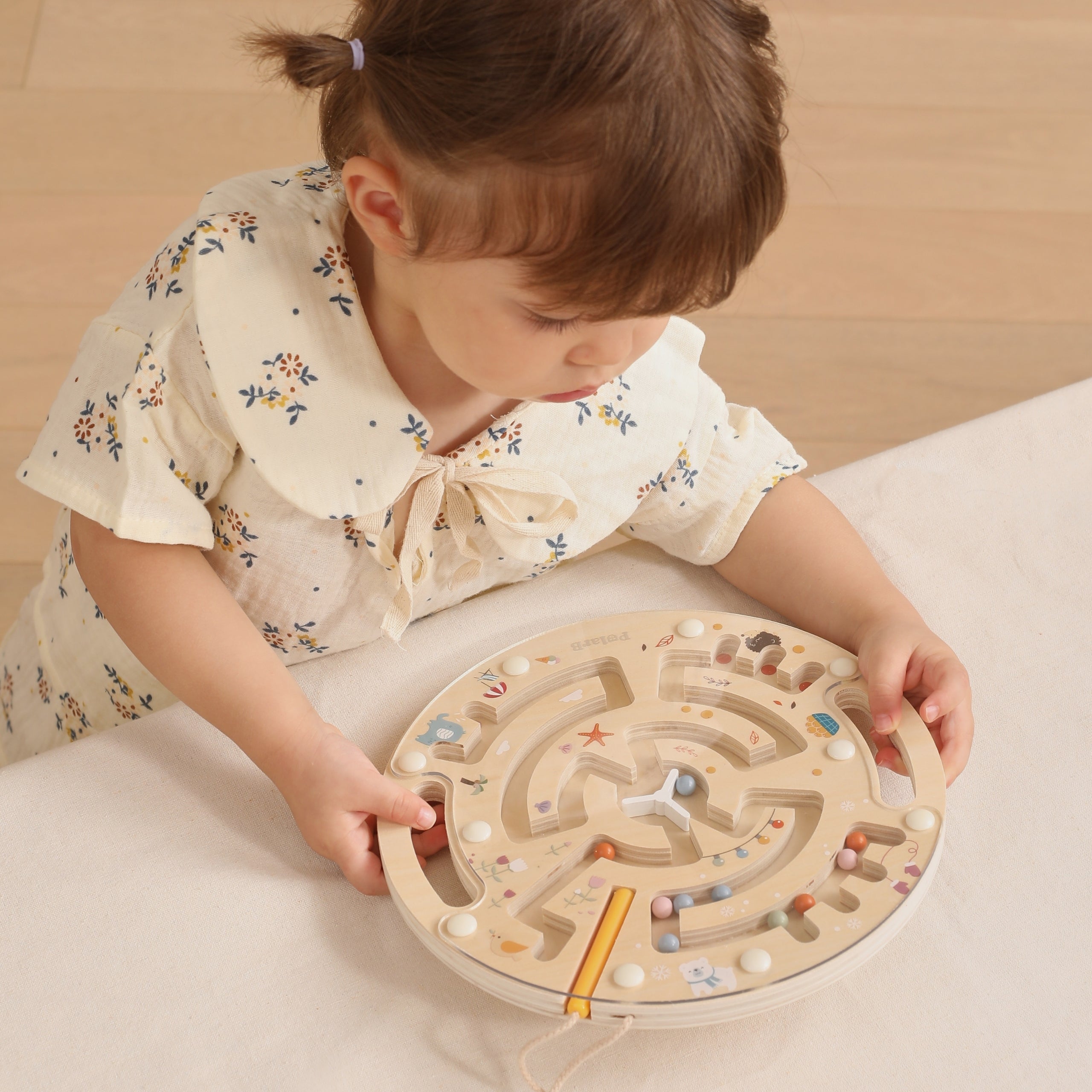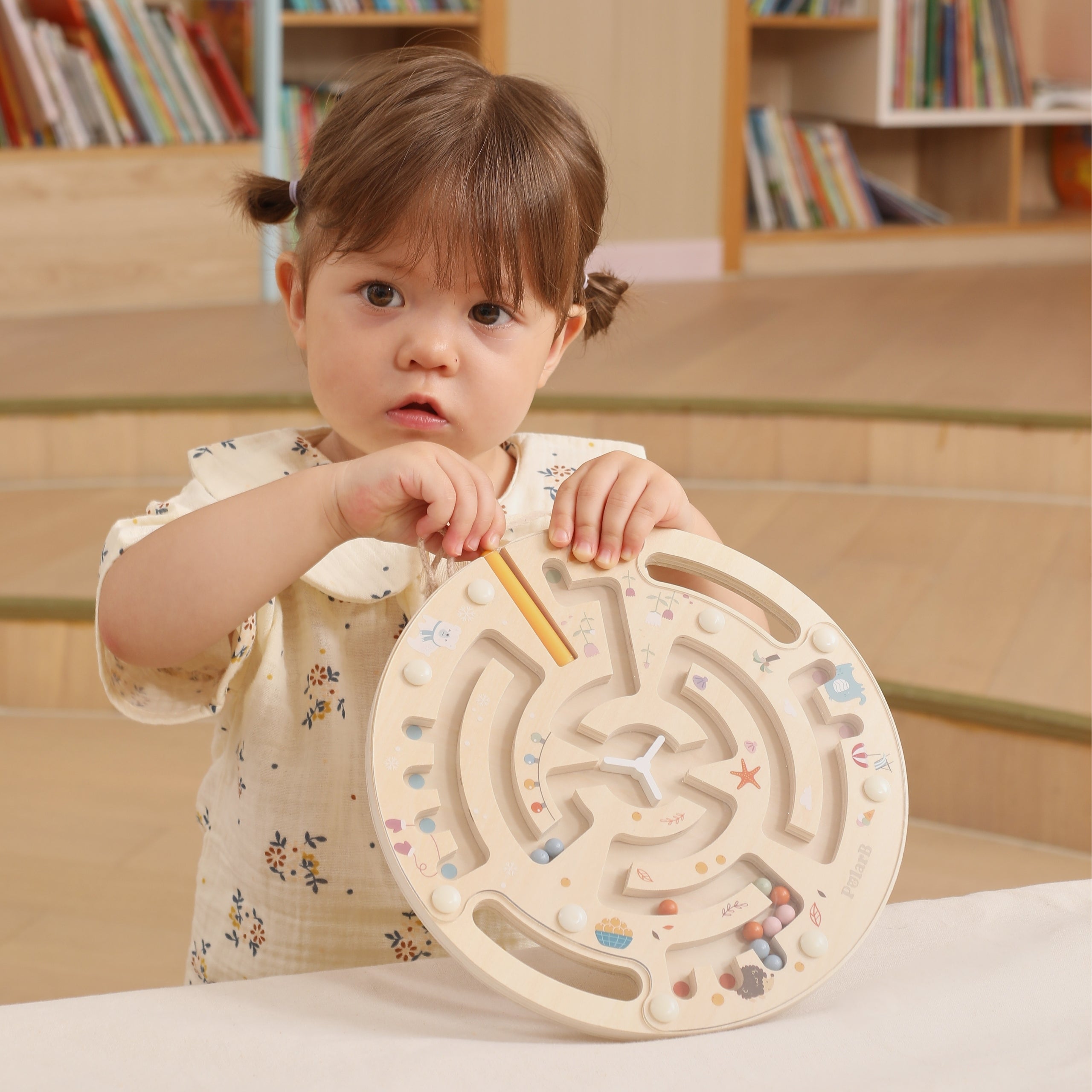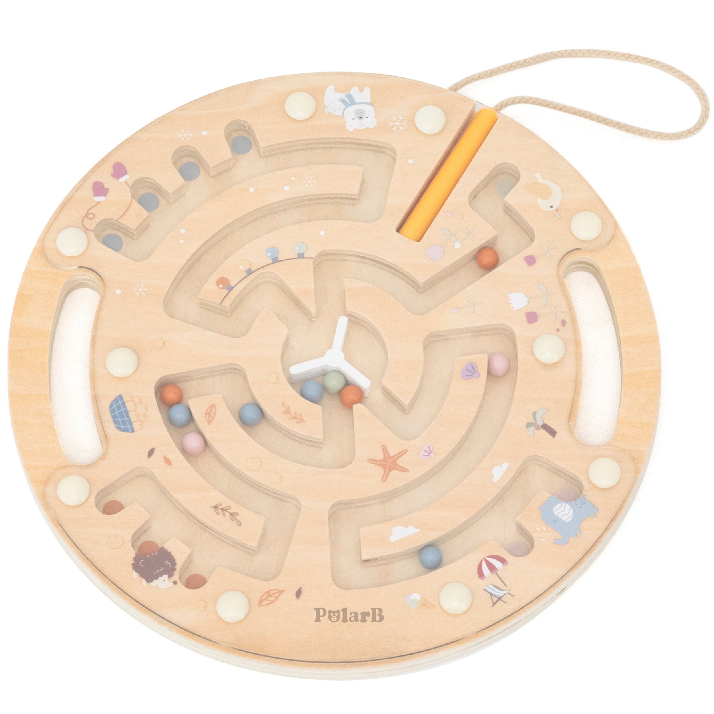 Magnetiline labürint brändilt VIGA Valmistatud kvaliteetsest puidust ja kaunistatud armsate illustreerimisega, mis kujutavad nelja aastaaega, pakub see mitte ainult suurepärast meelelahutust, vaid toetab ka käeliste oskuste ja loogilise mõtlemise arengut. Tänu magnetilisele pliiatsile saab laps liikuda värviliste pallide kaudu labürindis, harjutades käe-silma koordinatsiooni.
