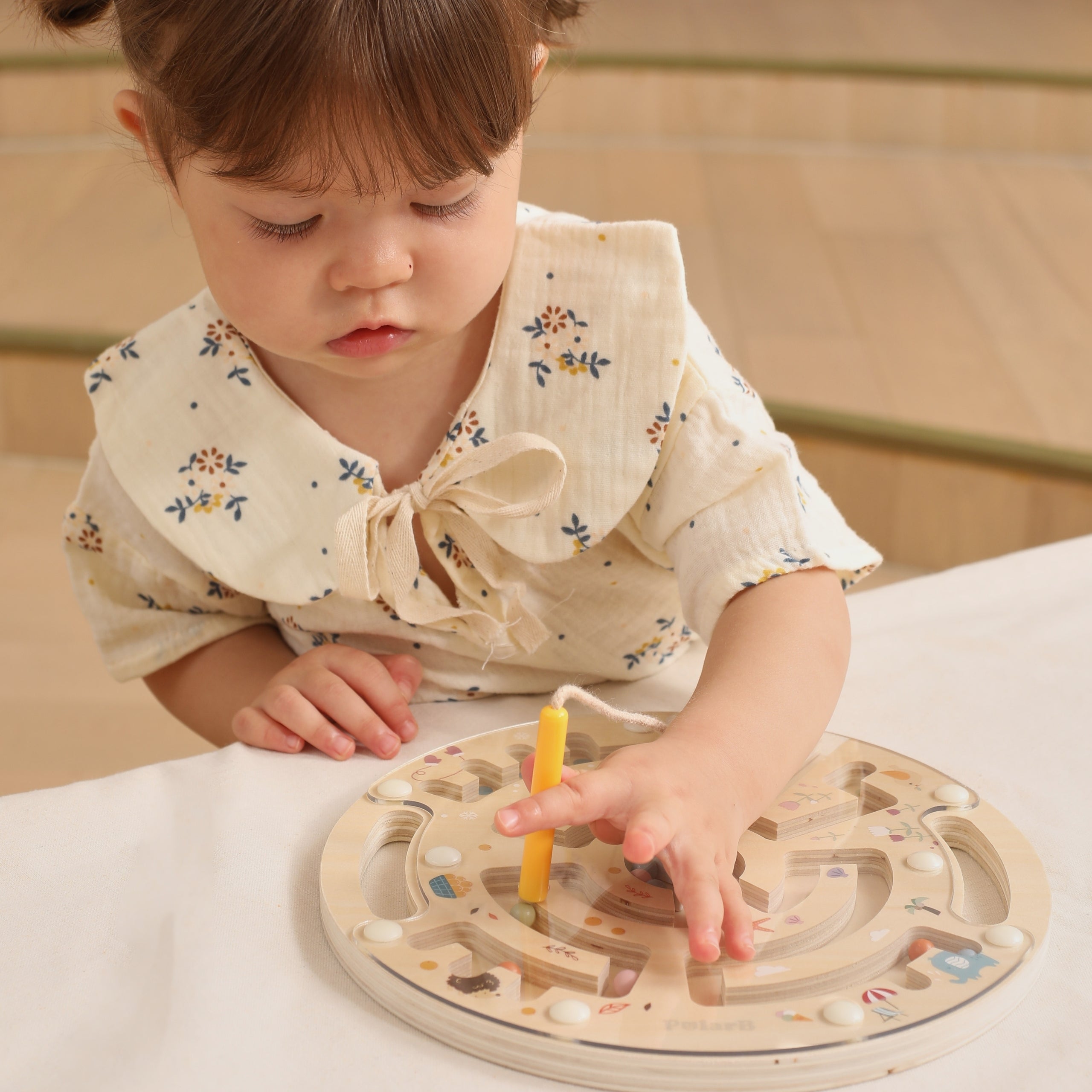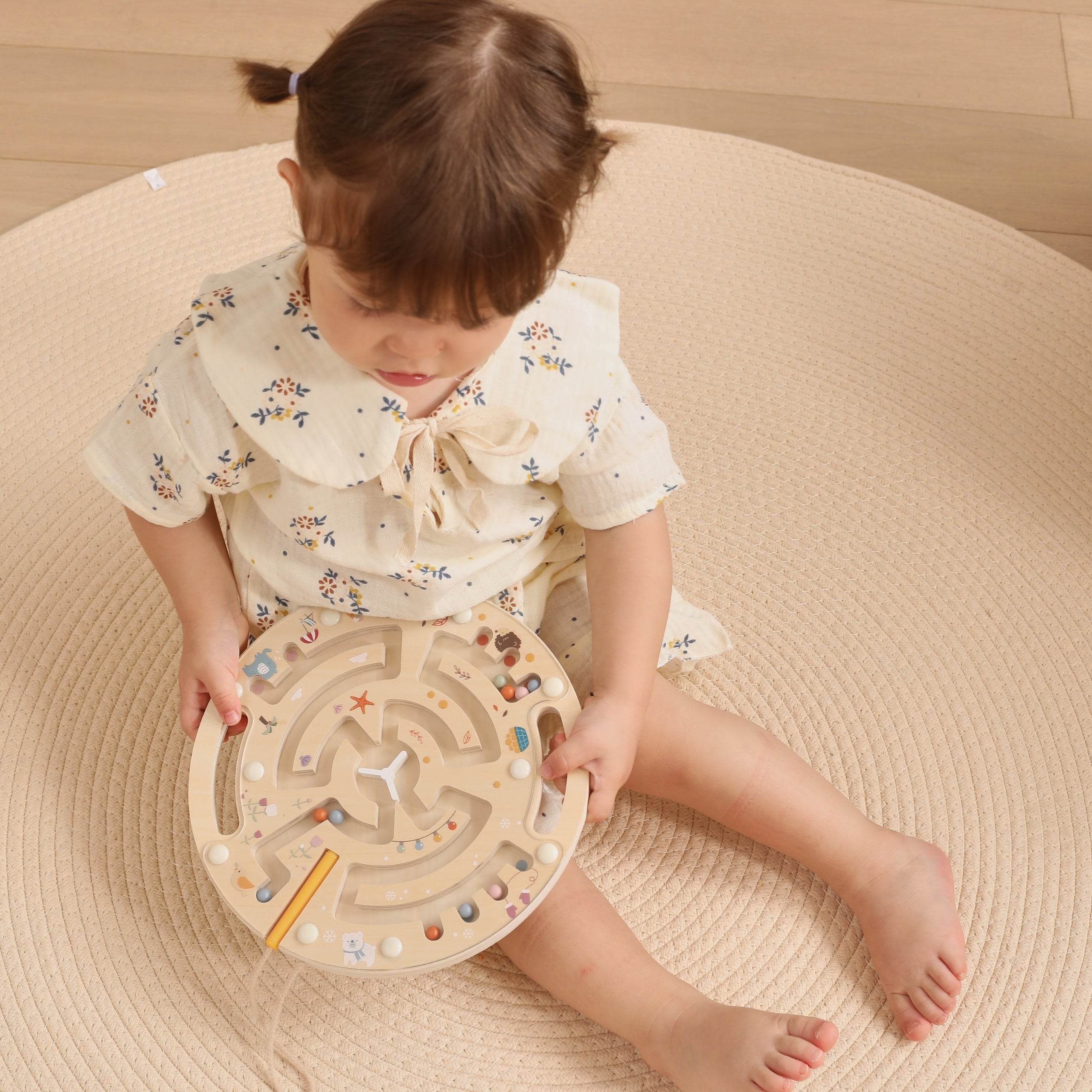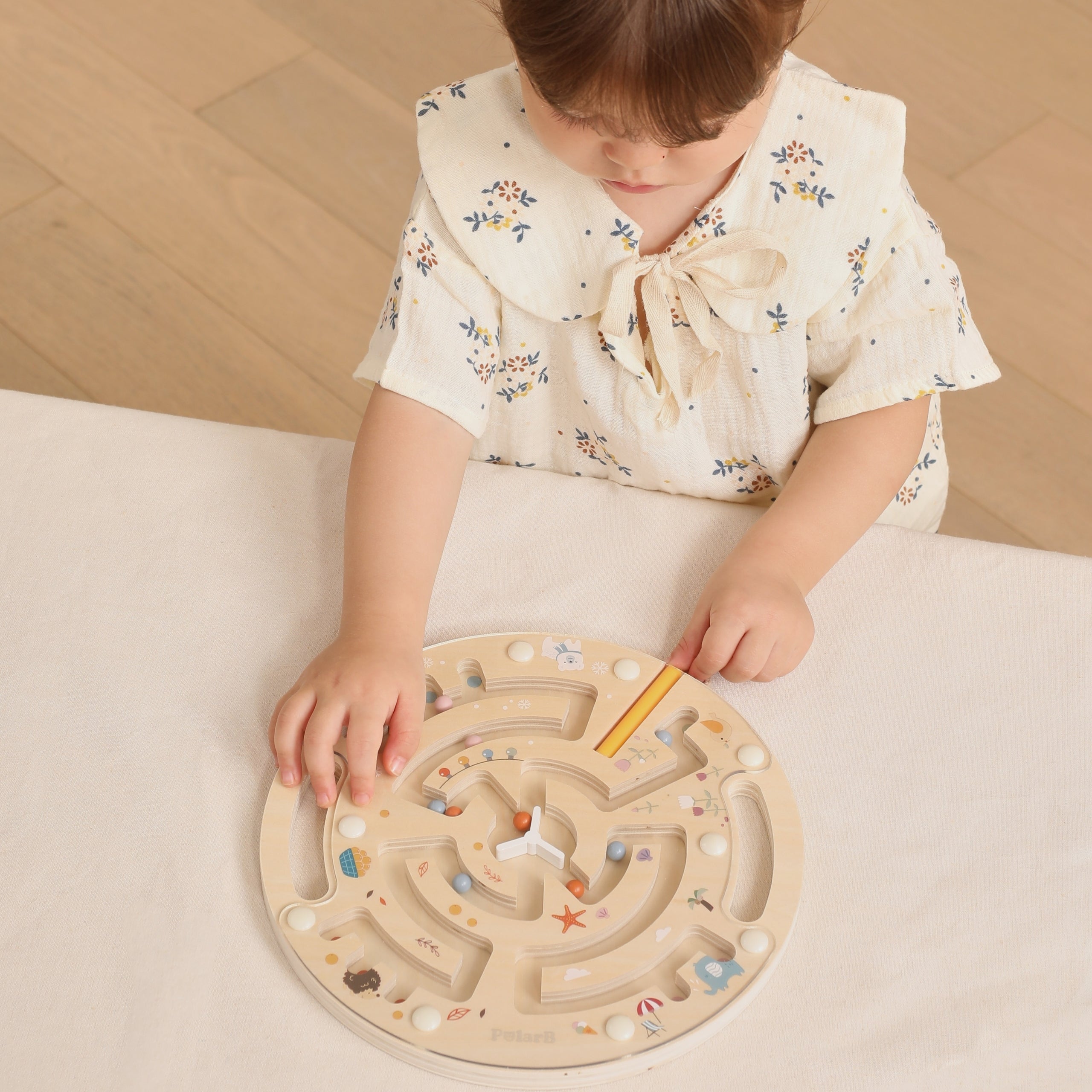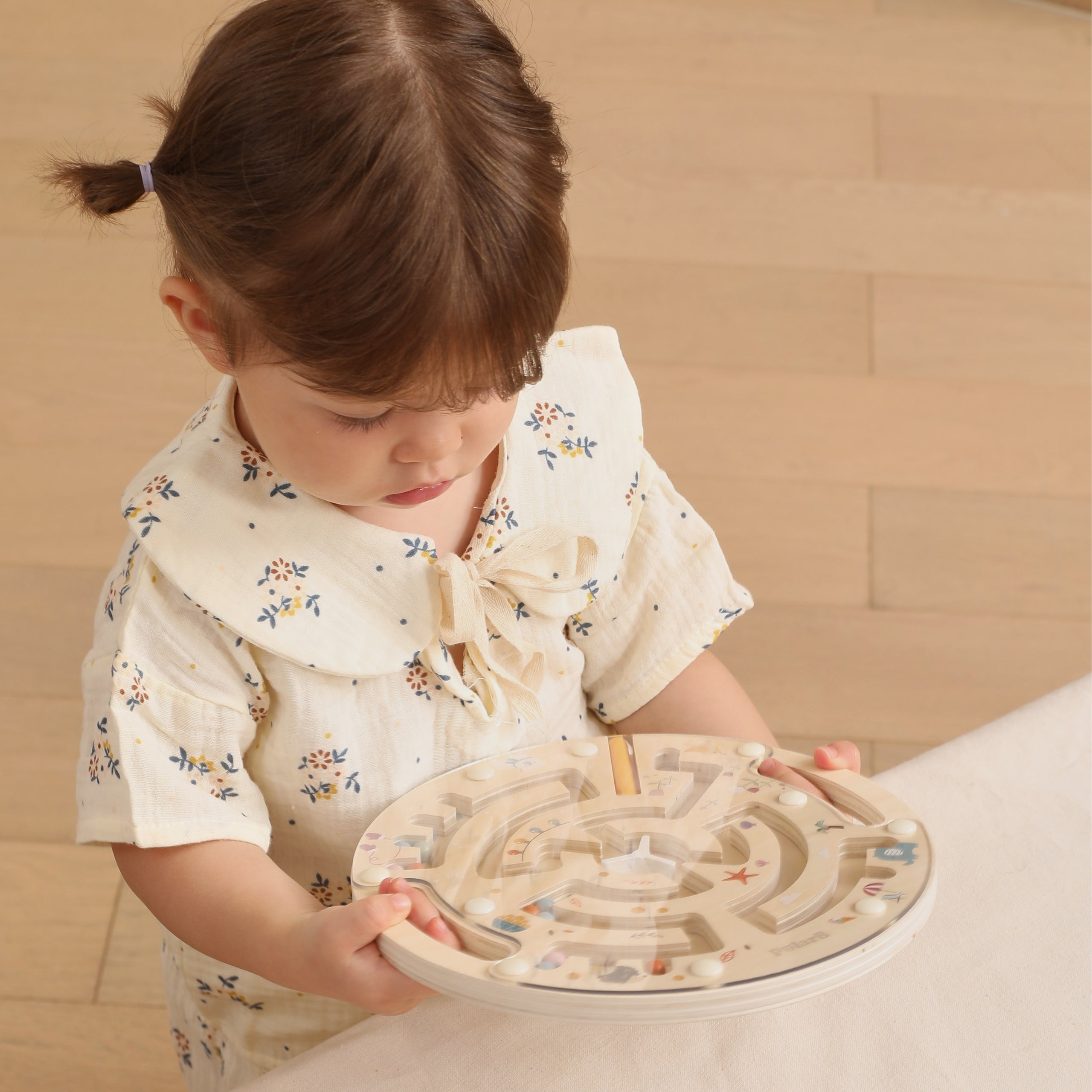 Magnetiline labürint brändilt VIGA Valmistatud kvaliteetsest puidust ja kaunistatud armsate illustreerimisega, mis kujutavad nelja aastaaega, pakub see mitte ainult suurepärast meelelahutust, vaid toetab ka käeliste oskuste ja loogilise mõtlemise arengut. Tänu magnetilisele pliiatsile saab laps liikuda värviliste pallide kaudu labürindis, harjutades käe-silma koordinatsiooni.