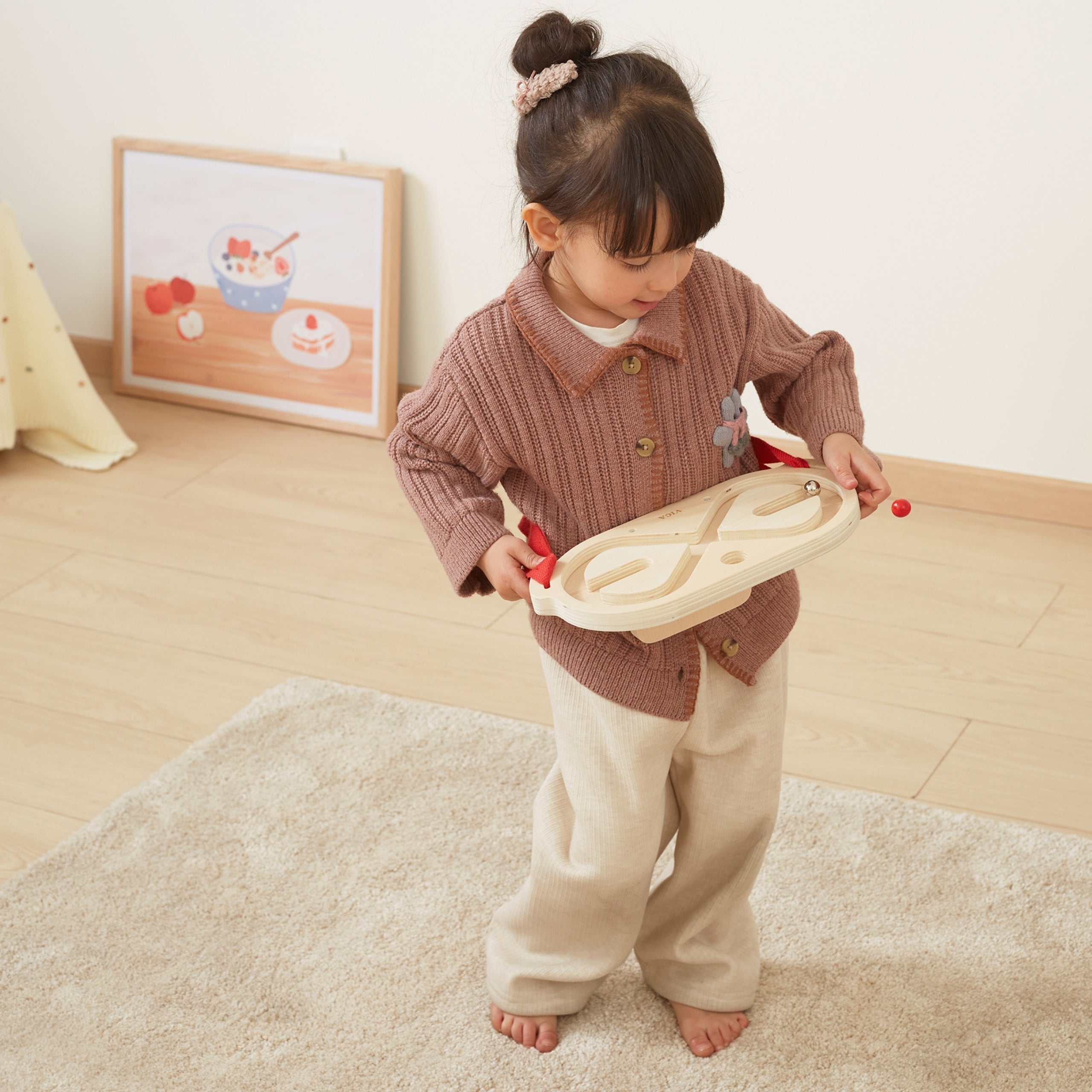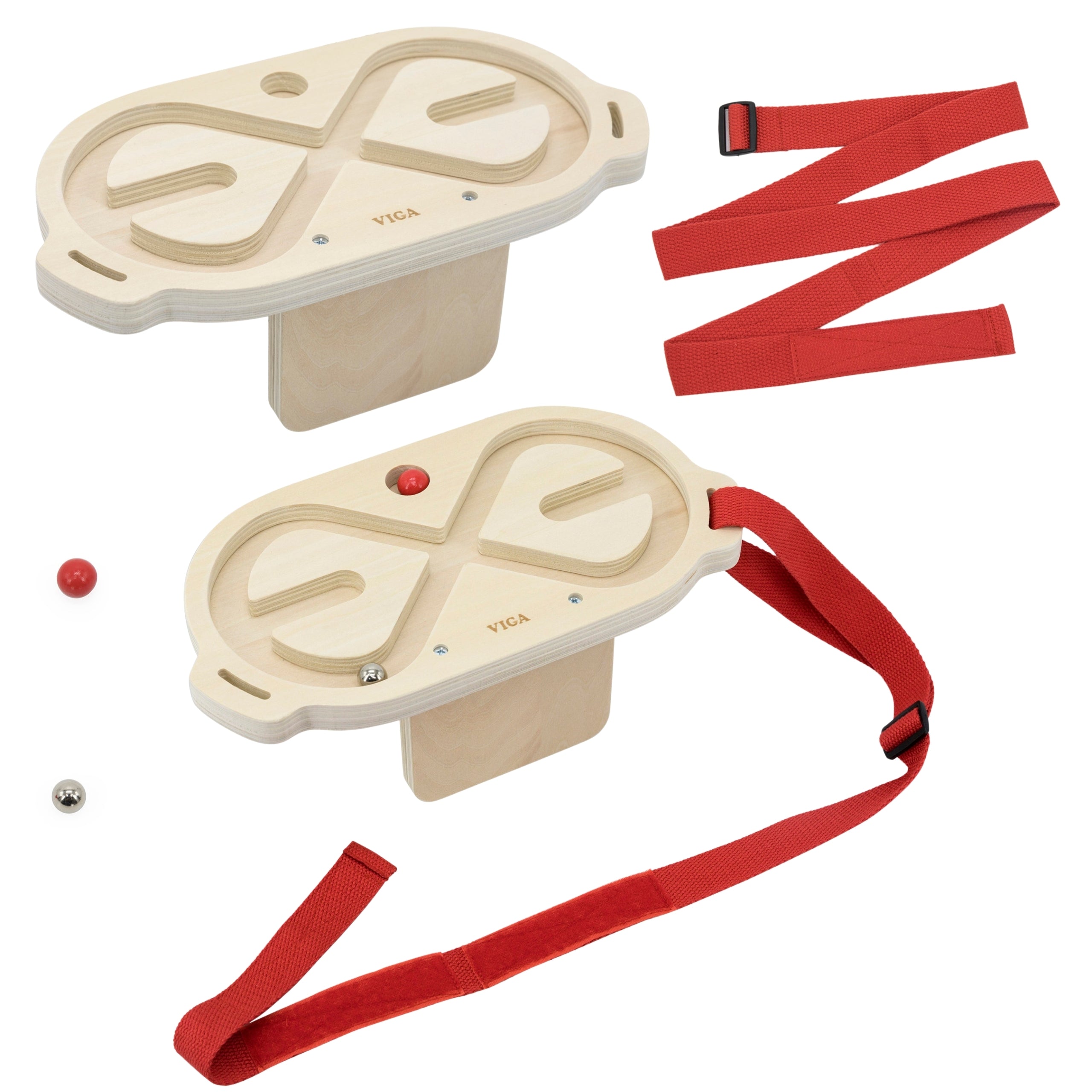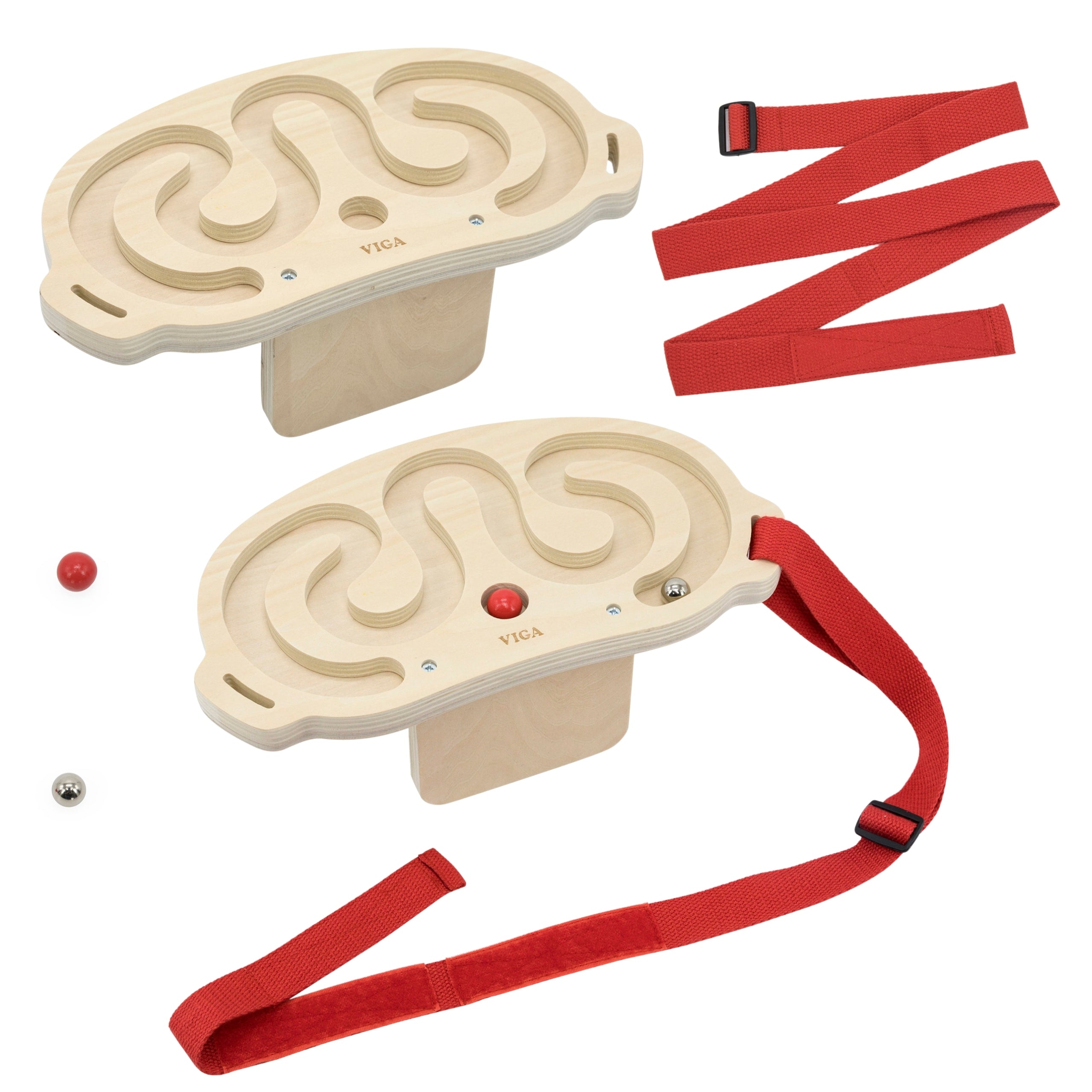 VIGA Kehalise tasakaalu labürindikomplekt on innovatiivne liikumismäng, mis kaasab kogu keha ja arendab koordinatsiooni ning tasakaalu. Tänu kahele puidust labürindile ja erineva kaaluga kuulidele muutub mäng laste jaoks põnevaks väljakutseks. Mängijad panevad labürindiga rihma enda piha, rindkere, jalgade või õlgade ümber ning liigutavad oma keha, et panna kuul liikuma ja juhatada see läbi labürindi. Mängu saab mängida nii üksi kui ka paaris, mis lisab lõbusust ja ühendab osalejaid.