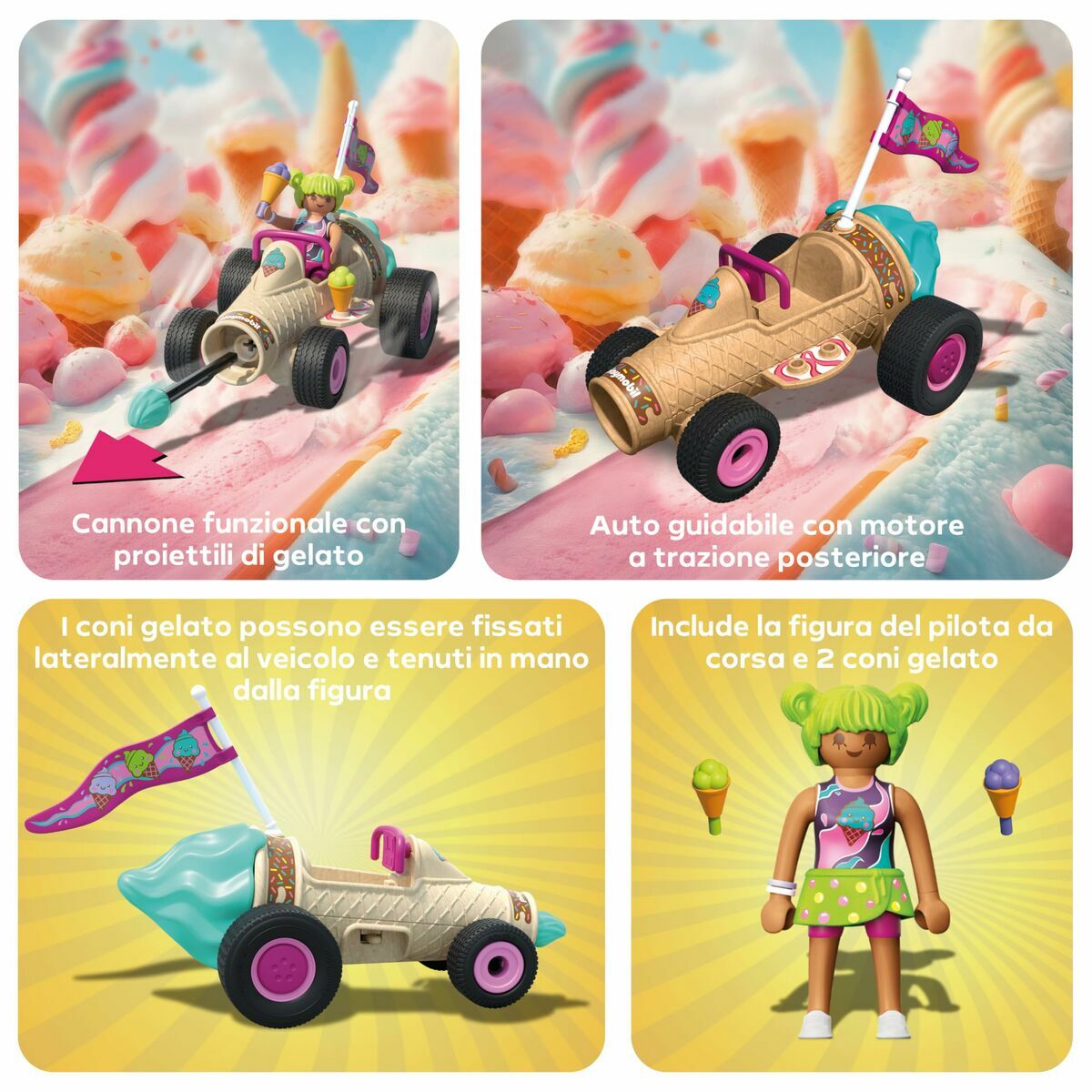 Playmobil playset "Playmobil Racing jäätisekoonus" on mängukomplekt, mis on mõeldud sobivalt lastele alates 3. eluaastast , kuid sobib ka üle 4-aastastele . Valmistatud vastupidavast plastikust ja mitmevärvilisena , pakub see mängukomplekti turvalist ja kaasahaaravat mängukogemust, mis soodustab loovust ja lapse kujutlusvõimet. Selle värvikas disain köidab kõige vähem tähelepanu ning soodustab sümboolset mängu võidusõidu ja jäätise teemal, mis aitab arendada motoorseid ja sotsiaalseid oskusi. Oluline on oluline, et sisaldab väikeseid osi, sobib komplekt see ainult üle 36 kuu vanustele lastele lämbumisohtu tõttu. Valmistatud Hiinas , see komplekt laste mänguasjade ohutusnõuetele, tagades kindlalt ja sobiva kasutuseesmärgi. See playset ühendab lõbu, kvaliteedi ja ohutuse, kutsudes looma dünaamilisi ja meelelahutuslikke mängustseene ning vastavalt valikule eelkooliealistele lastele.